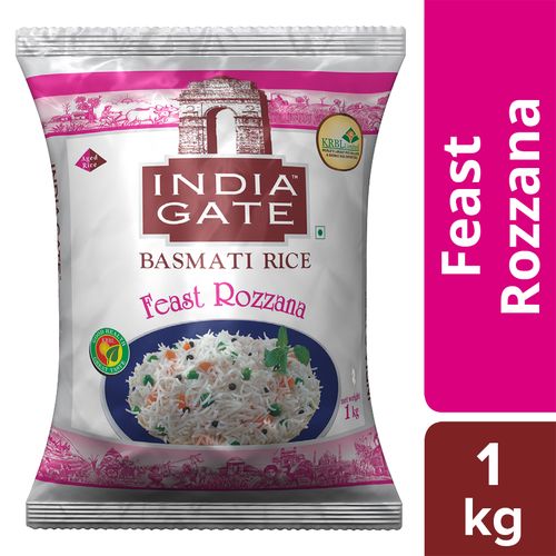 India Gate Feast Rozzana Basmati Rice is the long grain, sweet-smelling rice presents you a big time relish able delight to yourselves. It is completely apt for using in preparing numerous rice items. Wherever you eat in the World, India Gate Basmati Rice will be an essential part of every superiority rice recipe and on your platter to relish.